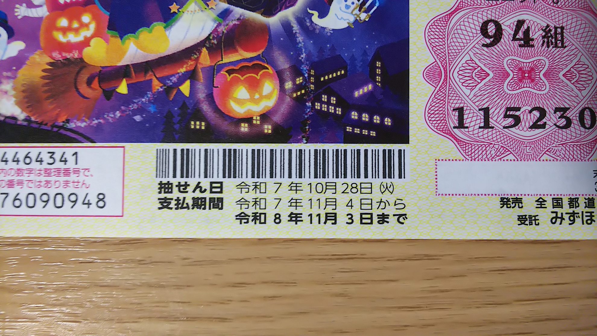ハロウィンジャンボとミニの抽選日は2025年10月28日(火)になります。