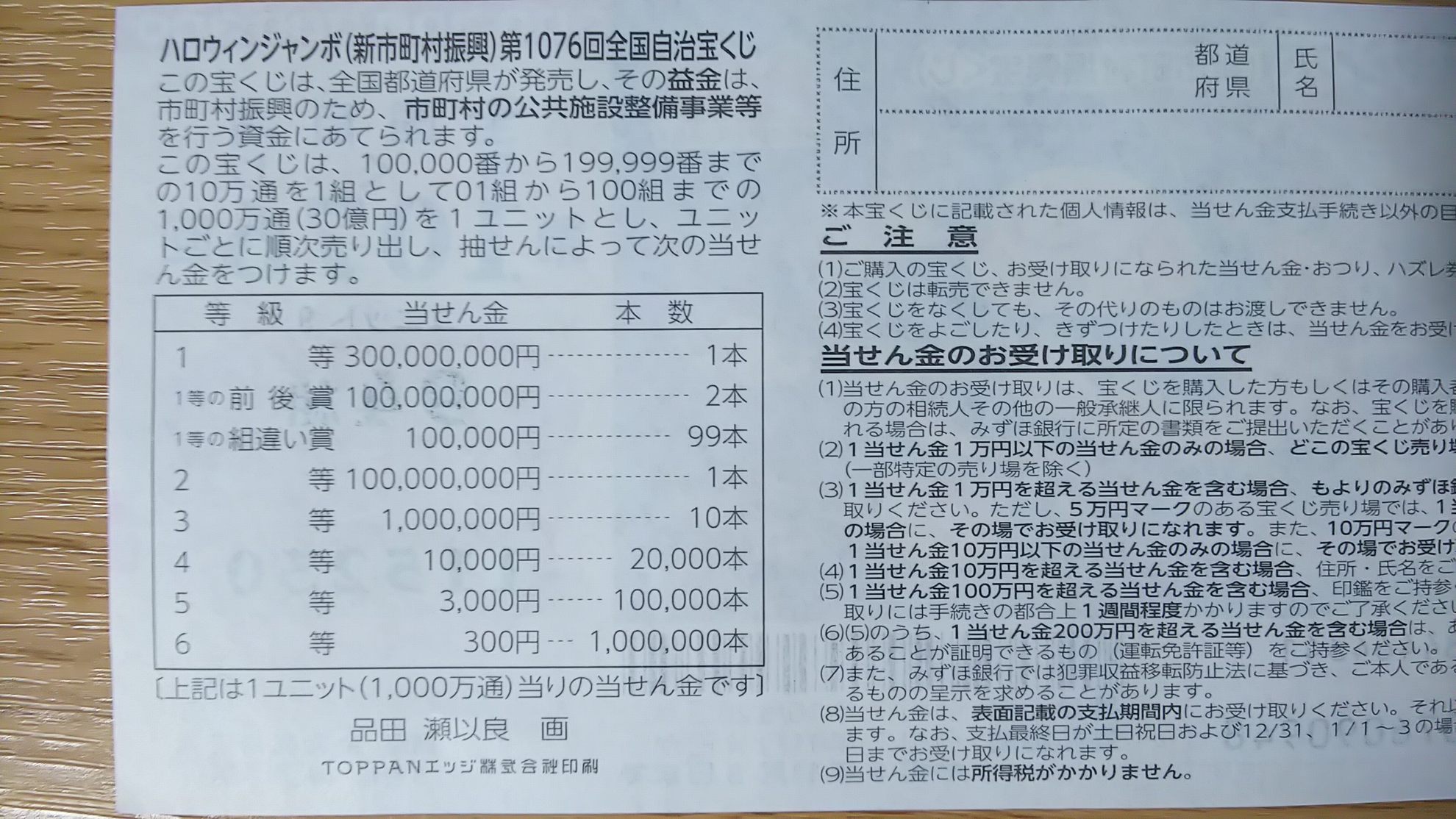 1. ハロウィンジャンボ宝くじ(第1076回全国自治宝くじ)