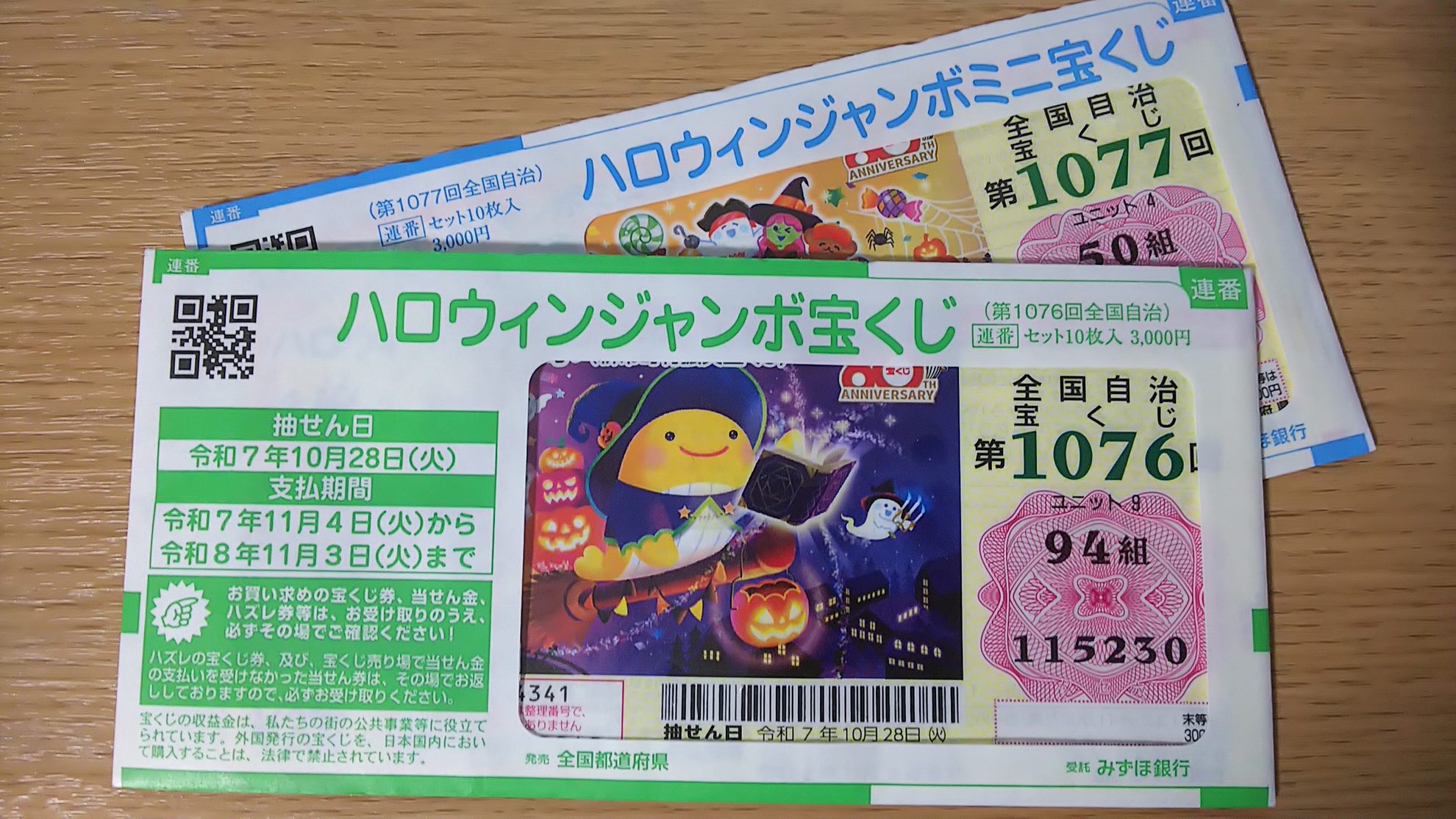 ハロウィンジャンボの抽選結果を確認して、ハズレ券もたくさん出ると思います。