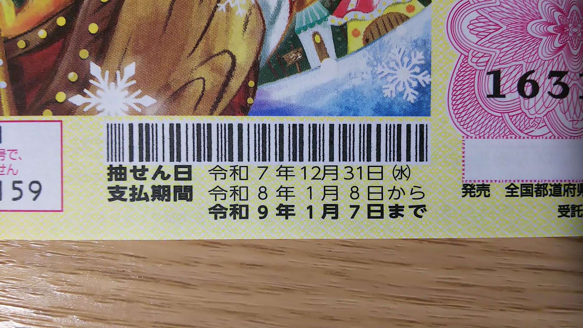 2025年の年末ジャンボミニの換金期間は、2026年1月8日(木)~2027年1月7日(木)までの1年間です。