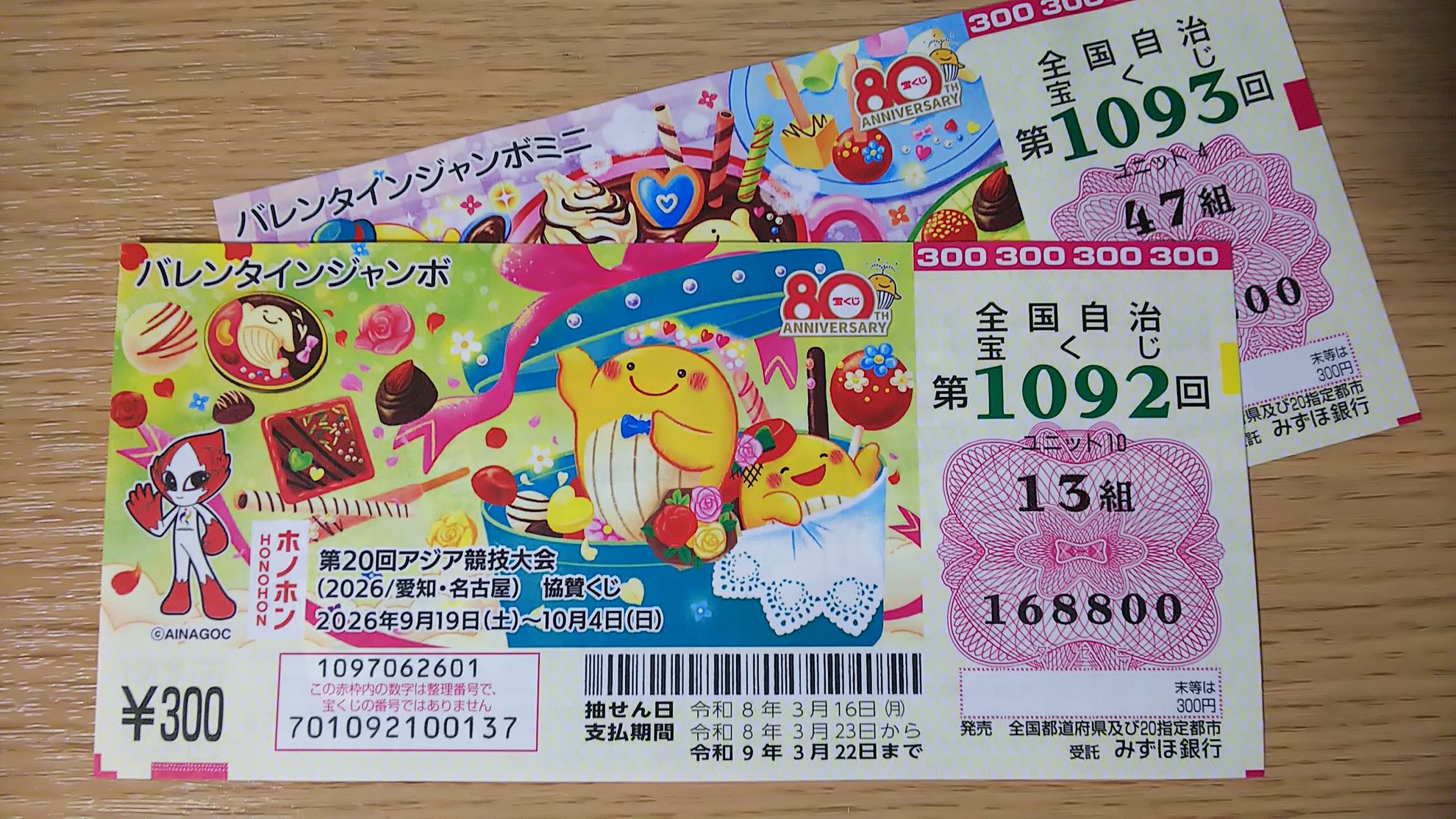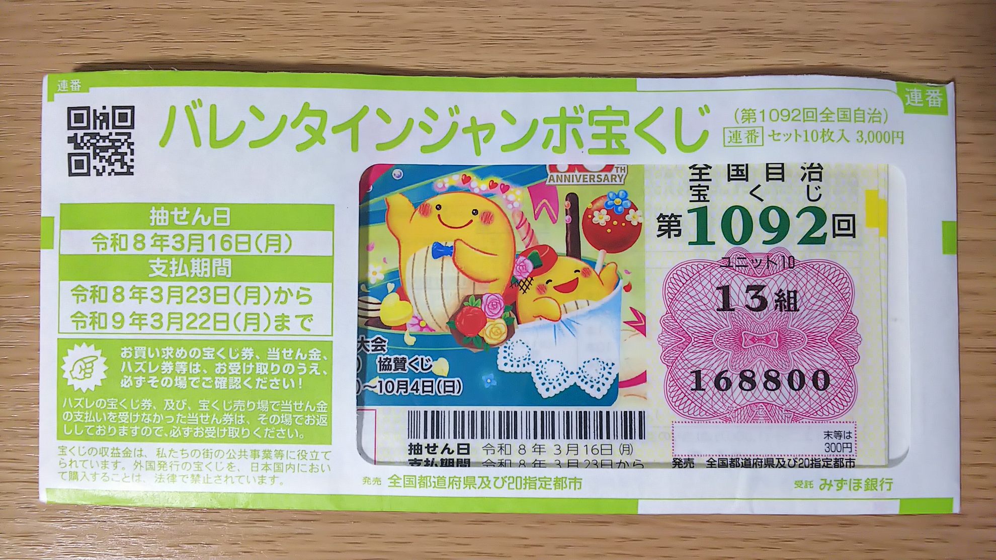 初めてバレンタインジャンボ宝くじというものを買ってみたいけど、1枚だけ買うとかでもいいのか?