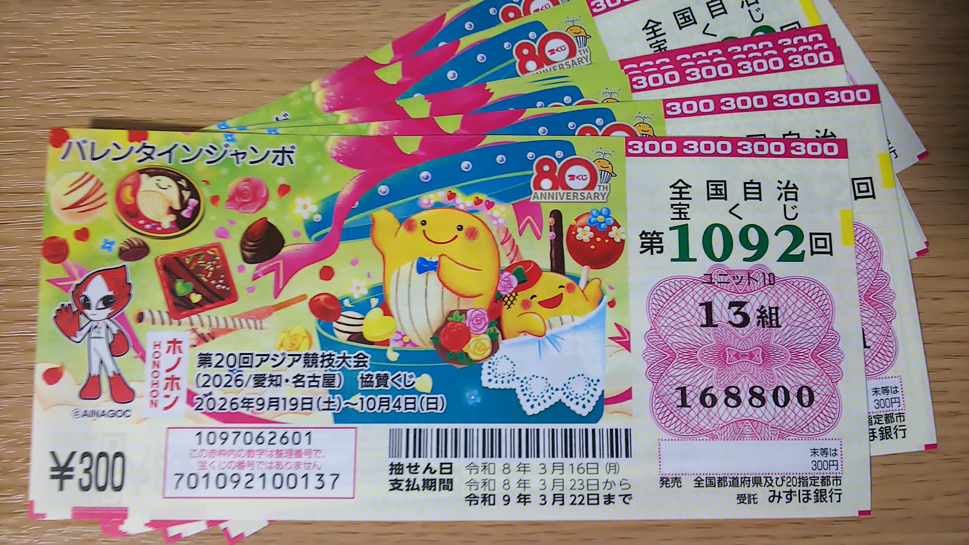 グリーンジャンボ宝くじから名称を変えてバレンタインジャンボ宝くじとなりましたが、2026年もやってまいりました!