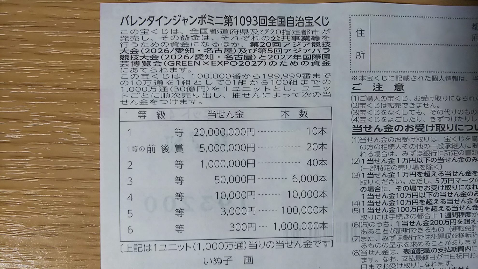 2026年もバレンタインジャンボミニ(第1093回)の発売がありますが、2018年から新しく名称が変わった宝くじです。